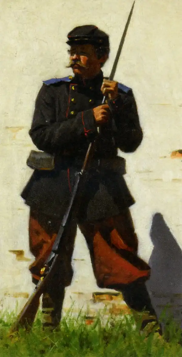 21. Болгарин в шубе и каракулевой шапке. Болгарский солдат у барьера. Парусная лодка. Нос лодки. Корова
