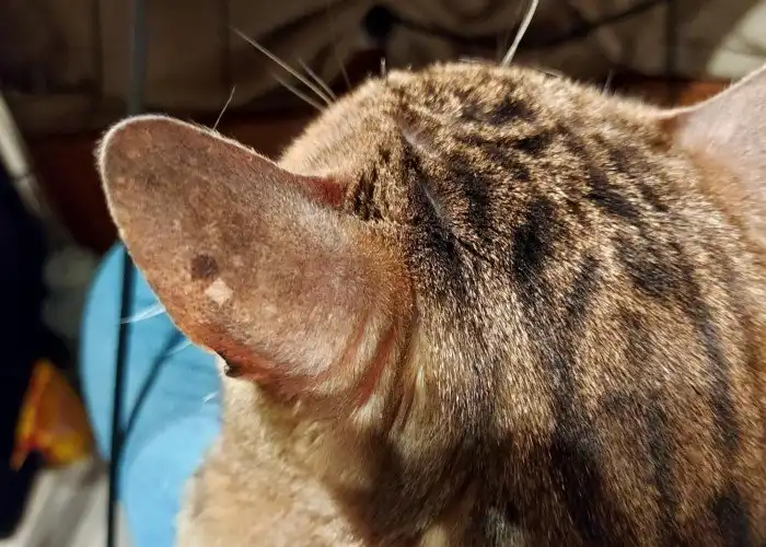 "У моего кота есть отметины на ушке в виде круга и квадрата"
