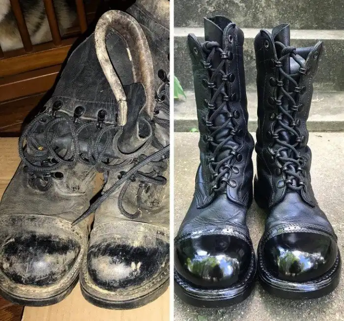 Ботинки до и после чистки