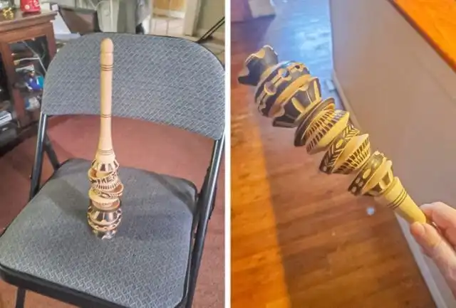 «Нашел это, когда убирался на чердаке. Он сделан из дерева, ручной работы, 20 см в длину. Но я понятия не имею, что это такое»