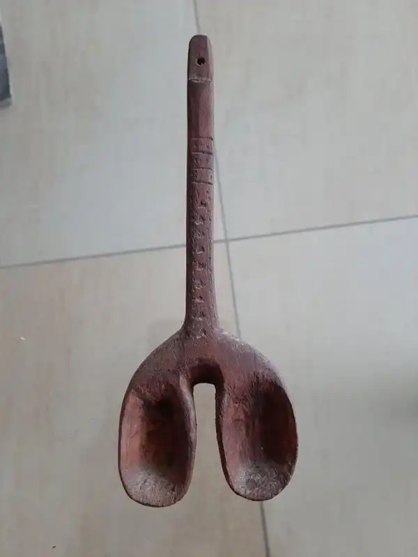Ответ: Это двойная ложка — символ гостеприимства в традиционном африканском искусстве. Он представляет собой 2 вселенные, противоположные друг другу.