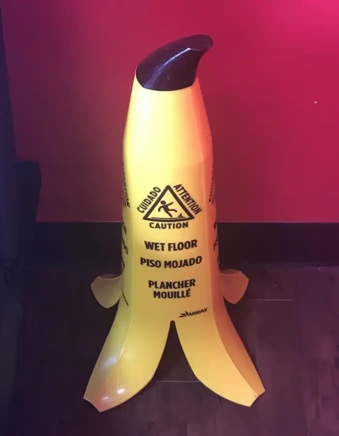 Стойка, предупреждающая о мокрых полах, в форме банановой кожуры