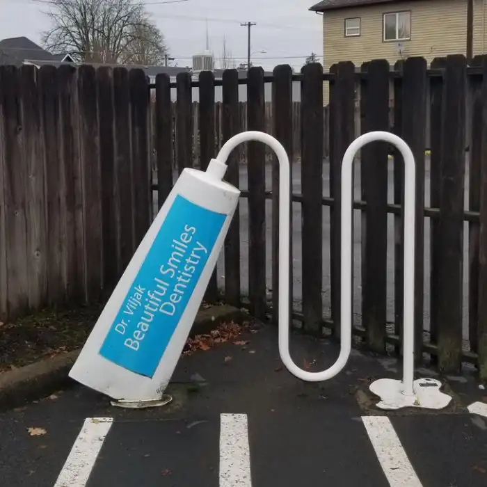 3. Стойка для велосипедов рядом со стоматологией выглядит так, будто её выдавили из тюбика зубной пасты