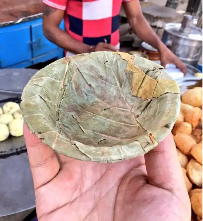 5. Одноразовая миска, сделанная из 3 прессованных листьев, скреплённых между собой небольшой бамбуковой палочкой