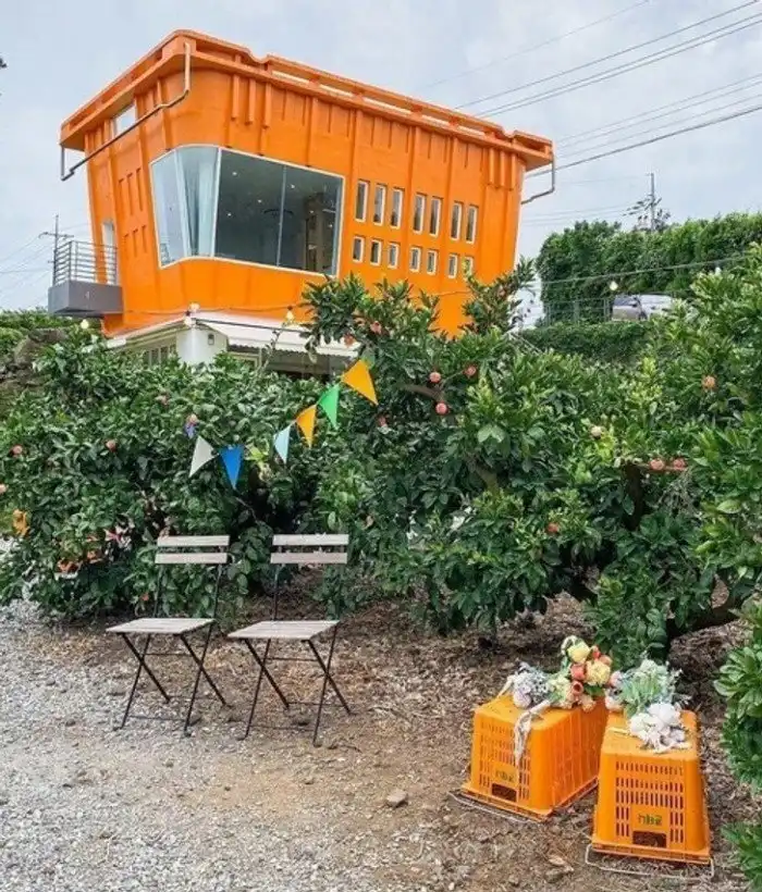 23. Кафе в виде корзины рядом с апельсиновой рощей в Чеджу, Южная Корея