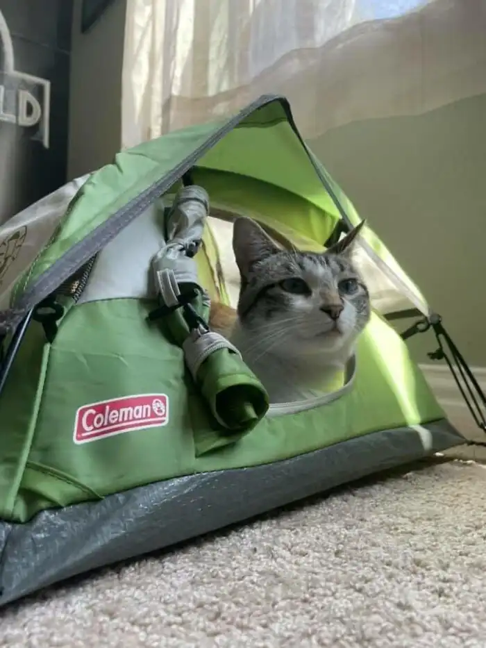 1. "Нашел на блошином рынке мини-палатку, которая использовалась как витринный образец в магазине снаряжения для активного отдыха. Теперь это кошачья лежанка"