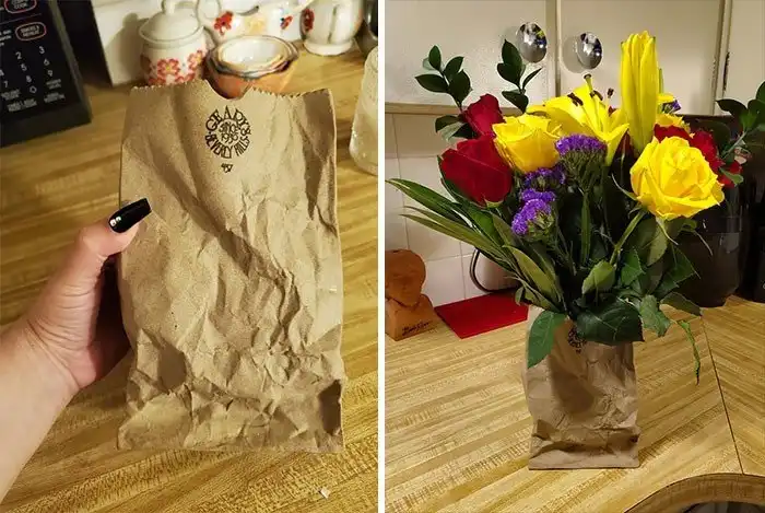 27. "Наконец-то нашла вазу для цветов в виде бумажного пакета в местном Goodwill. Я так обрадовалась, что тут же ее схватила"