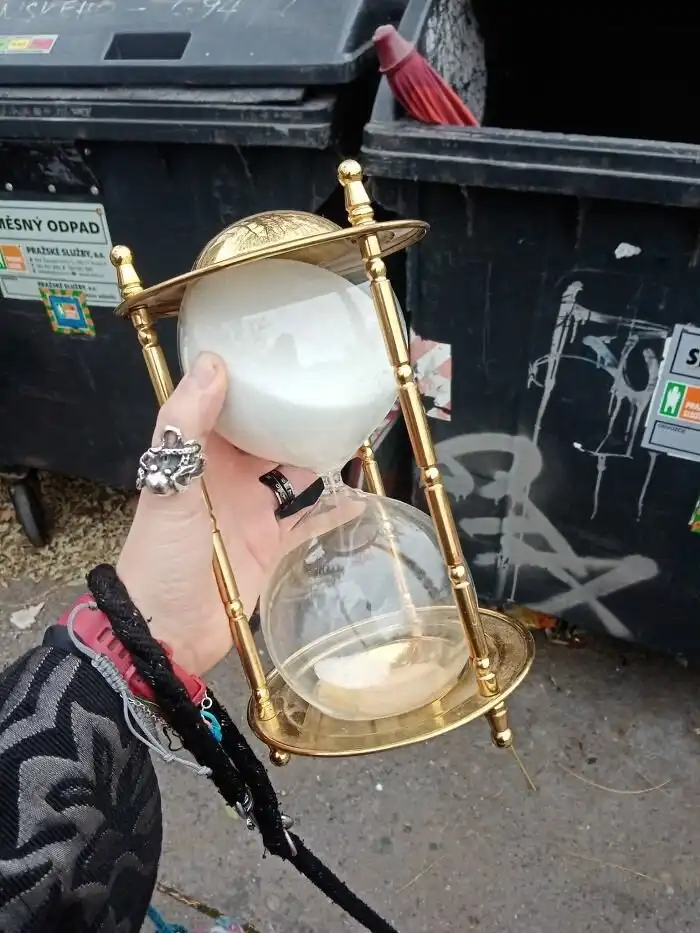 34. "Большие латунные песочные часы, которые я нашла в мусорном баке. Не знаю, зачем они мне, но я просто не могла их там оставить"