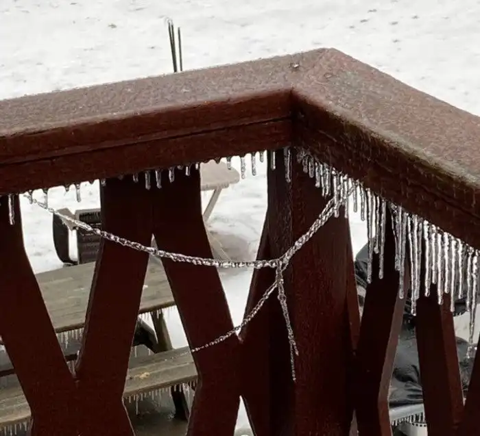 "Интересно, на чем держится этот свисающий снежный полог?"