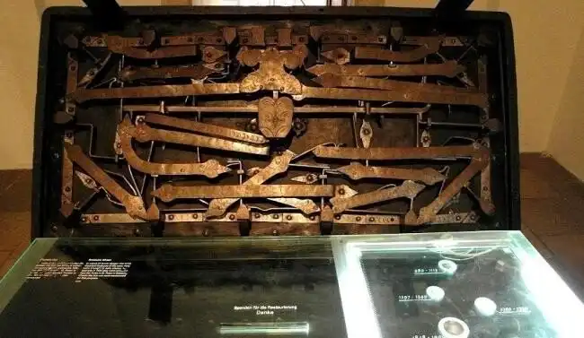 Этот сложный механизм на фото является прототипом банковского сейфа. В этом средневековом сундуке хранились сокровища аббатства Мельк в Австрии