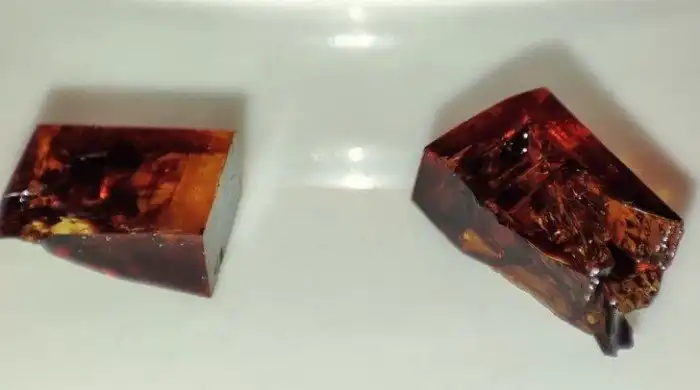 3. "Эти огромные кристаллы соли выросли в пакете соевого соуса, который пролежал нетронутым более 6 месяцев. Тот, что слева, имеет длину около 8 мм"