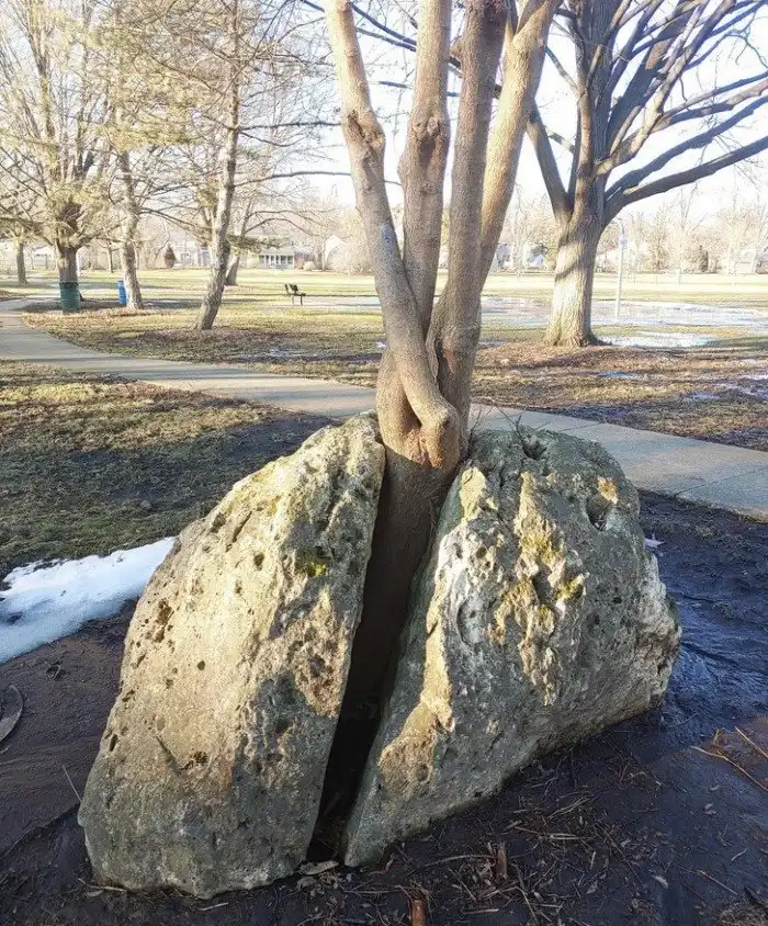 5. "7 лет назад этот валун у моего дома был цельным, а сверху из маленькой кучки грязи росло небольшое деревце"