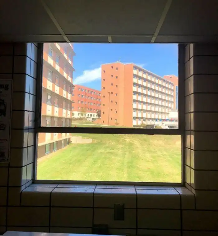 Вид из моего окна через защитную сетку выглядит, как рисунок