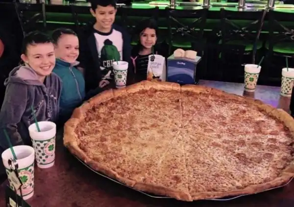 Нашёл старое фото, где мы с друзьями позируем с огромной пиццей