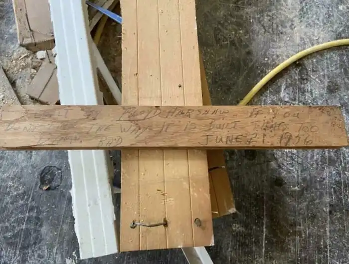 25. На этой половице написано: «Этот дом построил Флойд Хэршоу. Если вам не нравится, как он построен, это ваши проблемы. 21 июня 1956 г.»