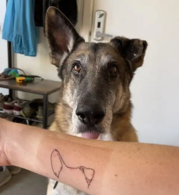 Татуировка, посвящённая моим родителям, собаке и родному дому