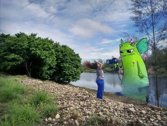 По словам художника, на создание одного изображения уходит 3-5 часов. "Иногда я вижу две разные фотографии, и затем мне в голову приходит идея. Я сразу представляю себе какого-то персонажа, который мог бы идеально влиться в этот снимок и взаимодействовать с ним - и рисую его так, чтобы это выглядело естественно," - рассказывает художник.