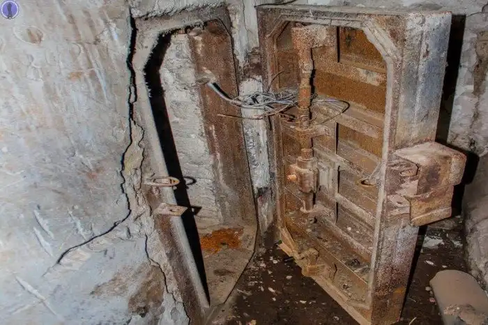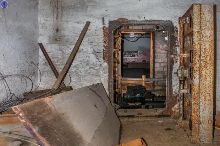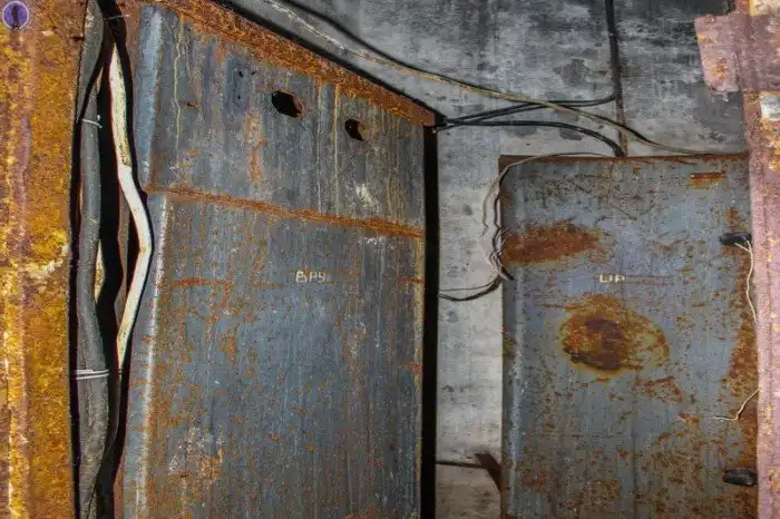 Её вес составляет более полутонны, а служила она как для предотвращения попадания в убежище взрывной волны, так и для препятствованию попадания внутрь герметичного контура отравляющих веществ, для чего по периметру полотно двери было снабжено резиновой вставкой в месте прилегания двери к коробу дверного проёма.