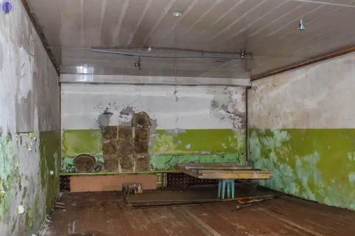 А теперь перейдём во вторую часть убежища, которая не была перестроена, а осталась в том же виде, что и была после многих лет заброшенности в 1990-х гг.