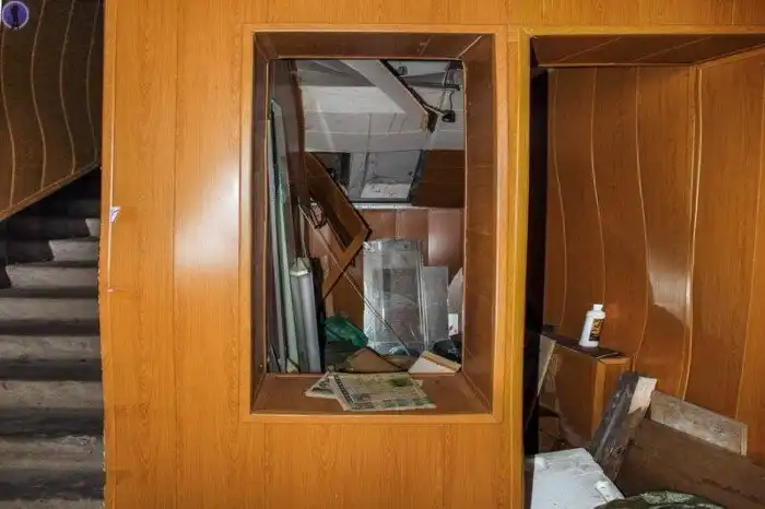 Внутри всё ещё можно было встретить различные плакаты, остатки оборудования и видеокассеты по восточной мануальной технике.