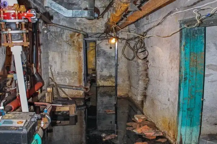 Здесь располагается подвальный тепловой узел и даже горело несколько лампочек.