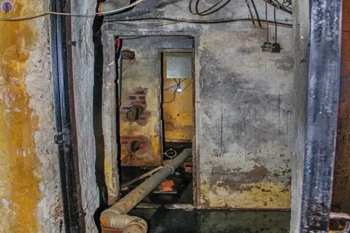 Эта часть убежища сильно сгнила и была подтоплена чёрной неприятно пахнущей водой.