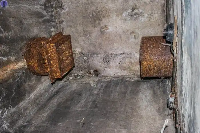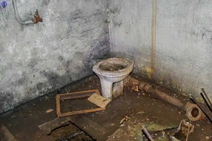 Самыми сохранившимися помещениями в этой части убежища оказались бывшие санузлы, где было два туалета.