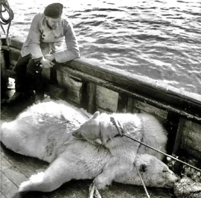 4. Белый медвежонок обнимает свою мертвую мать, около Шпицбергена, 1970-е.