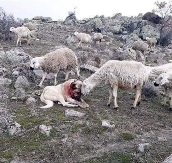 11. Овца благодарит собаку, которая спасла её от нападения волка.
