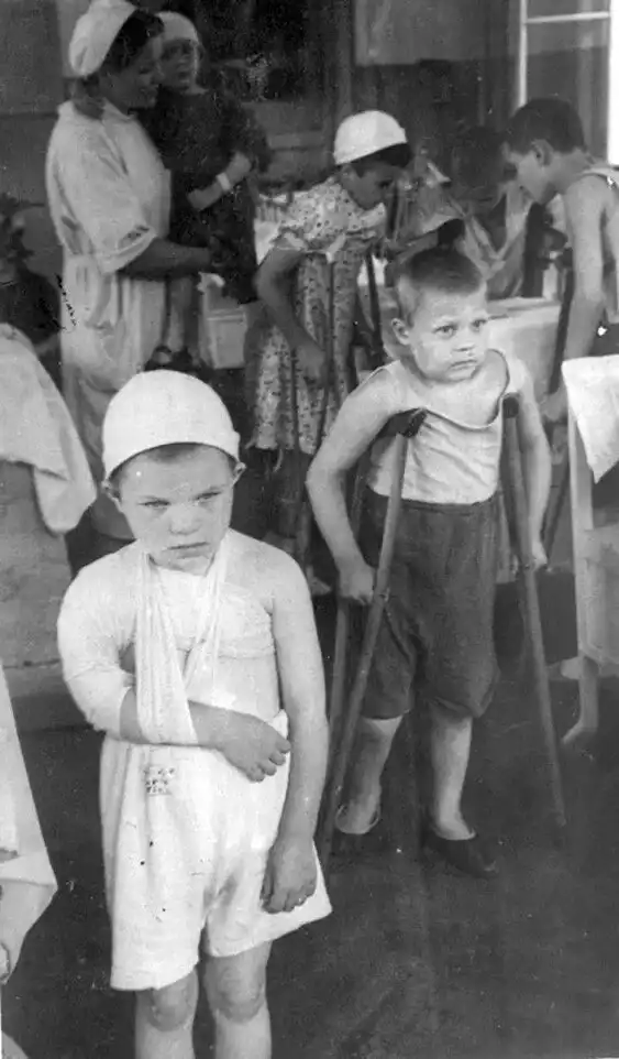 35. Раненые дети, пострадавшие от артиллерийских обстрелов города, в Ленинградском государственном Педиатрическом институте. Ленинград