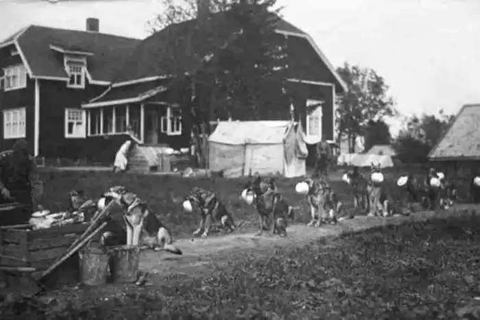 39. Собаки-пограничники выстроились в очередь за обедом, с мисками в зубах... Дисциплина ...1930-е