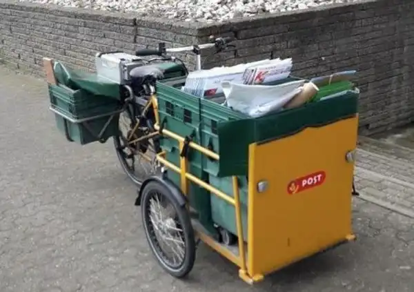 Вот на таких симпатичных электробайках рассекают местные почтальоны