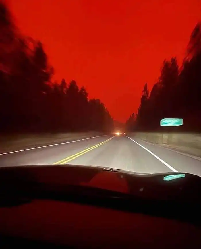 20. В Северном Оканагане, Британская Колумбия, дым от лесных пожаров стал настолько сильным, что закрыл солнце, оставив небо кроваво-красным