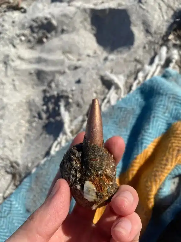 2. "Сегодня мой брат нашел на пляже пулю 50-го калибра в коралле"