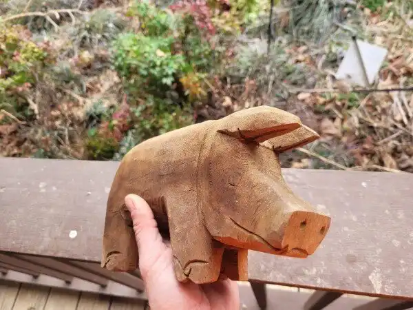 14. "Пожилой джентльмен, живущий по соседству со мной, вырезал из дерева этого поросёнка"