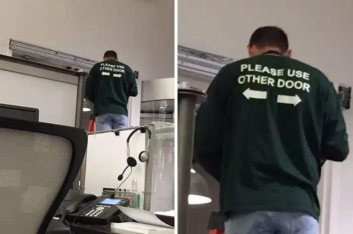 5. Рубашка рабочего по совместительству еще и знак: "Пожалуйста, воспользуйтесь другой дверью"