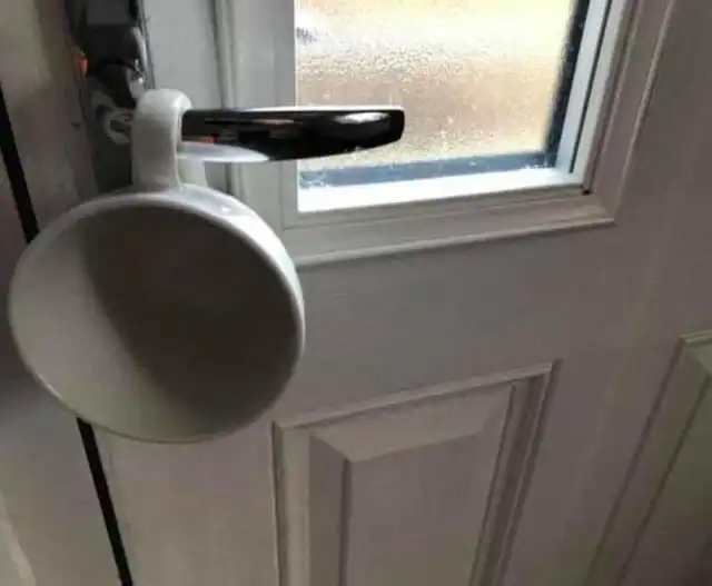 Оставляю кружку на ночь на ручке, чтобы услышать, если кто-то вломится в дом