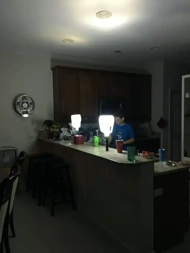 Во время сбоев электричества вместо свечей включи фонарики и рассеивали свет с помощью бутылок