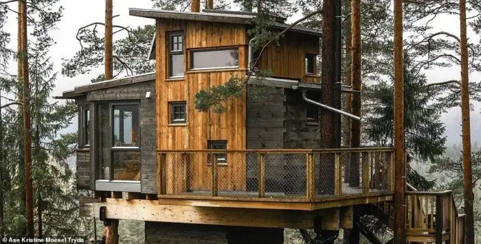 Расположенное среди сосен Гьерстада на юге Норвегии, «Гнездо кукушки» - прочное, просторное и удобное» и больше похоже на гостиничный номер. Современные удобства включают газовую плиту, электричество на солнечной энергии и дровяную печь. Он находится в красивом естественном окружении, где настоящие суровые условия природы немного ближе, чем они могли бы быть в более «нормальном» здании».