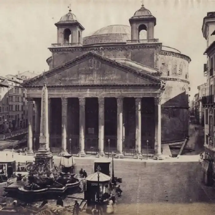 4. Фото Пантеона в Риме, сделанное в 1860 году. Глядя на это фото, что-то не верится, что Пантеон был построен в 125 году. На вид типичное средневековье, причём довольно позднее..