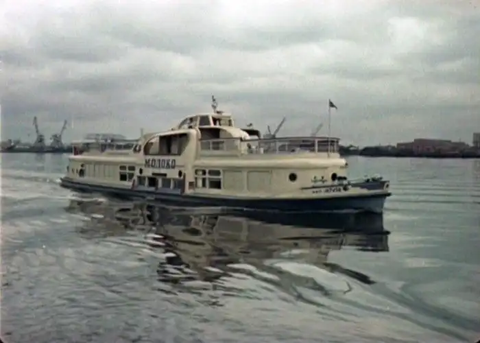 5. Судно–молоковоз, 1956 год, Москва. Такие суда доставляли из подмосковных ферм свежее молоко в Москву.