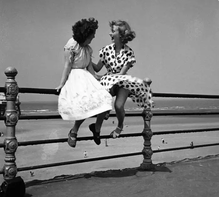 13. Когда в ветреный день 1951 года Пэт Стюарт позировала со своей подружкой Венди на перилах набережной курортного городка Блэкпул в Англии, она и понятия не имела, что эта фотография станет знаменитой.