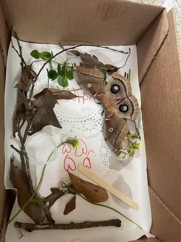 "Моя дочь нашла раненого мотылька и принесла его, чтобы он согрелся. Она сделала ему дом из обувной коробки".