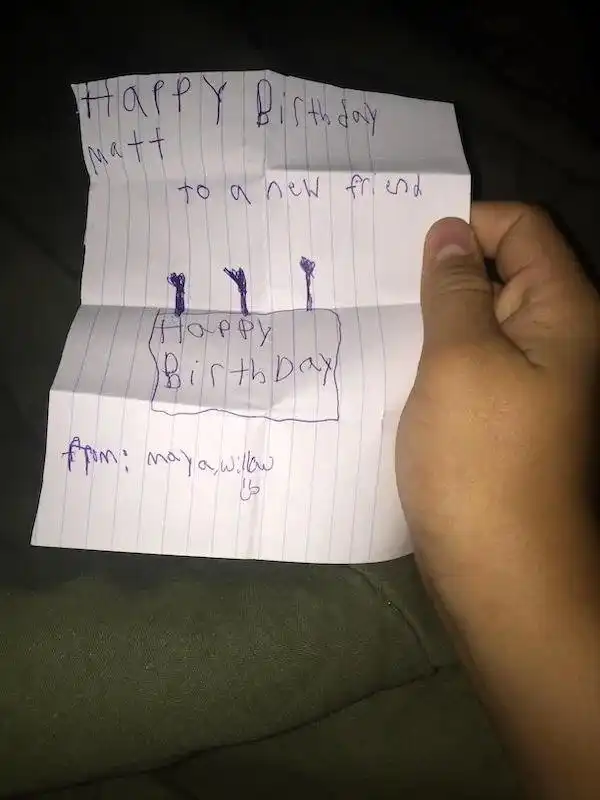 "Когда я переехал к отцу, у меня не было друзей, кроме пары человек. Это то, что они подарили мне, когда я сказал им, что у меня день рождения, и это был лучший подарок, о котором я когда-либо мог просить".