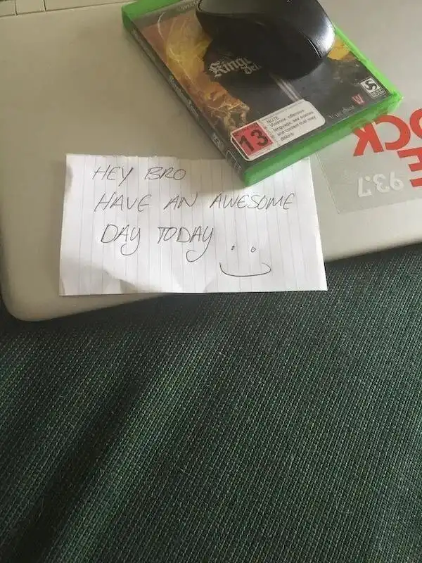 "Недавно у меня случилась небольшая депрессия, и мой сосед по квартире оставил мне сегодня записку с пожеланием хорошего дня".