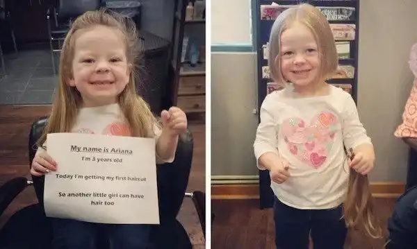 "Моя 3-летняя дочь увидела маленькую девочку без волос и спросила, почему она лысая. Я объяснила, что она больна, и от лекарства у неё выпадают волосы. "Ой. Она может взять часть моих волос, — сказала дочка".