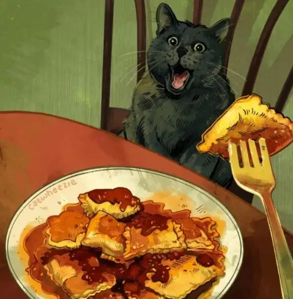 Эмили Пакуин — художница из США. В 2020 году она начала рисовать по одному мемасному котику в день, и с тех пор не останавливается — используя мемы разной степени легендарности в качестве референсов, Пакуин создает замечательные и не уступающие оригиналам в забавности иллюстрации.