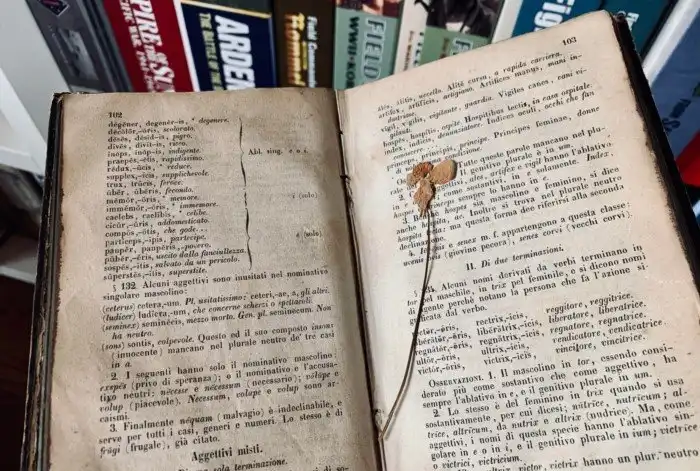 Засохший цветок в 165-летней книге на латинском