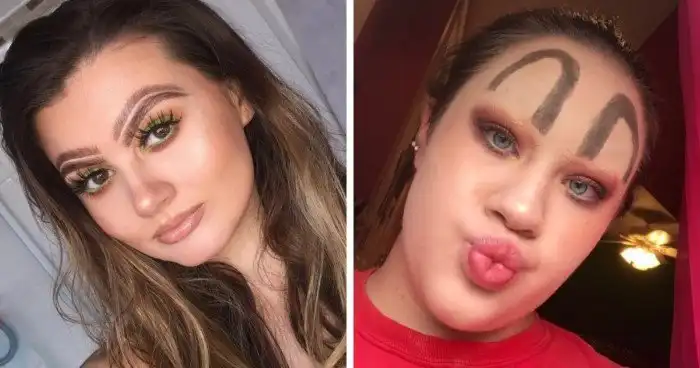 Однако люди всё равно продолжают экспериментировать со своей внешностью. Это касается одежды и макияжа. Особое внимание в последнее время уделяется бровям. Многие бьюти-блогеры считают, что это «новые губы», так как они акцентируют внимание на лице. Поэтому их декорированию нужно уделить особое внимание. Некоторые девушки, видимо, поняли этот совет слишком буквально, и вот что у них получилось.