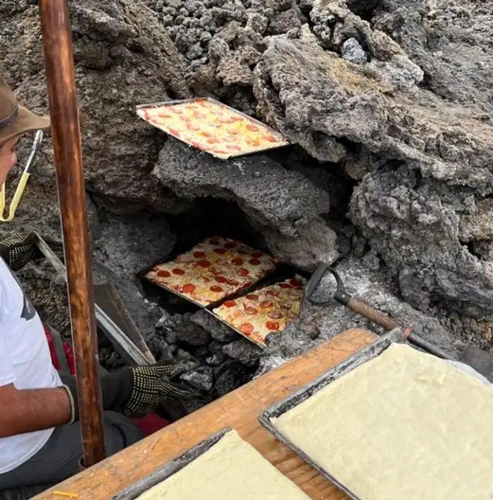 Мужчина готовит пиццу у вулкана Пакайя в Гватемале